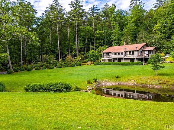 With commanding views over its own pasture bisected by meandering stream, this 18.36 acre gentleman's farm is nestled between USFS property and land owned by Highlands Biological Station. 3 Bedroom home with additional bonus or office space was built for comfortable year 'round living and has been recently updated with new HVAC system, enlarged closet space, destination sun room. Outbuildings include barn and equipment shed. pond, trails and additional building site(s)- all this only 7 miles to the center of Cashiers!