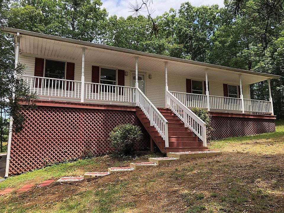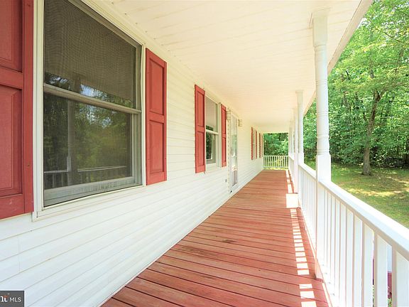 Raised rancher with over 2,100 sq. ft. The wooded property sits on over 1.7 acres. Enjoy morning coffee on the large, spacious 48 x 6 covered front porch. 3 bedrooms and 2 full bathrooms. Large eat-in kitchen with stainless steel appliances. The lower level has studs, drywall, insulation, and is plumbed and ready for a bathroom - Finish the rooms how you want! The walk-out basement has a 1 car garage.