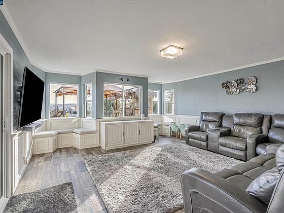 This 3-bedroom, 2.5-bathroom home offers stunning water views of the Straits of Carquinez and Mt. Diablo. The open floor plan is perfect for entertaining, while the spacious backyard provides a serene outdoor retreat. Enter the home to find a defined entry with a spacious living room to the left and an oversized staircase to your right, that leads up to the sleeping areas. Pass through to the main living area where you will find a separate dining room, kitchen, oversized walk-in butler’s pantry, and spacious family room with water views. The living spaces are defined and separate, with an open flow. The sliding glass doors off the family room lead to a covered outdoor patio, perfect for entertaining or soaking in views. Upstairs features a private primary retreat with a generously sized room, walk-in closet, primary bath with double vanity, and a large den off the primary bedroom that faces the open space. Open the French doors to the 2nd story balcony and enjoy the view! This space is perfect to serve as your home office, gym, library or as a private sanctuary. Key Features: * Panoramic water views * Modern kitchen with stainless steel appliances * Energy-efficient with owned Tesla solar & EV cgr * 2 Gas fireplaces * Private primary retreat with wood-paneled den/study