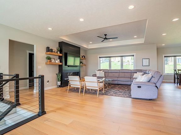 This meticulously maintained home showcases true pride of ownership. From the moment you step inside, you’ll fall in love with the open-concept design, natural light, and thoughtful finishes throughout. The spacious living room features a striking fireplace accent wall and large windows overlooking the covered back deck. The chef’s kitchen is right out of a magazine, boasting a generous hard-surface island, gorgeous custom white cabinetry, and a hidden walk-in pantry. Just off the kitchen, you’ll appreciate the drop zone, ideal for daily essentials, which connects to a main-floor laundry room complete with storage and a utility sink. The primary suite is a private retreat, offering a large walk-in closet, dual sinks, and a spa-like tiled walk-in shower. On the opposite side of the home, you’ll find two additional bedrooms and a full bath. The finished basement is built for entertaining or creating your own personal oasis. Enjoy a spacious family room with a stylish wet bar, a private gym with rubber flooring, and a separate storage room. Two additional bedrooms and a ¾ bath complete this lower-level living space. Additional highlights include: Oversized 3-stall garage with 220 outlet (ready for heater install) Sprinkler system, Covered composite deck, Multiple storage rooms for all your needs, radon system installed, upgraded dual stage furnace and AC, hard surface counters/vanities. This home truly has it all; style, space, and modern amenities designed for today’s lifestyle.