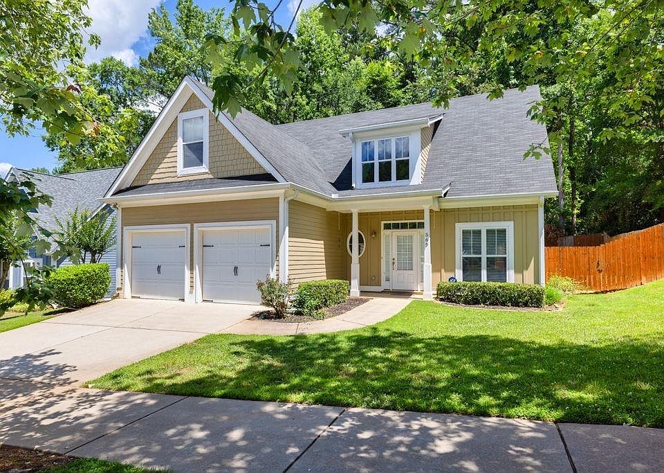 Look at this GEM! 4 BR, 2.5 BA with hardwoods and master on main. Much larger than appears. So much natural light, open floor plan, Cathedral ceilings, 2-story entry and 2-story great room with Fireplace. This lovely, welcoming home makes you smile as you walk in the front door. House well-maintained. HVAC and water heater replaced. Kitchen offers lots of granite counter space to prepare meals and entertain Exterior and interior recently painted. Yard with lights and Tiki bar! Private fenced yard.