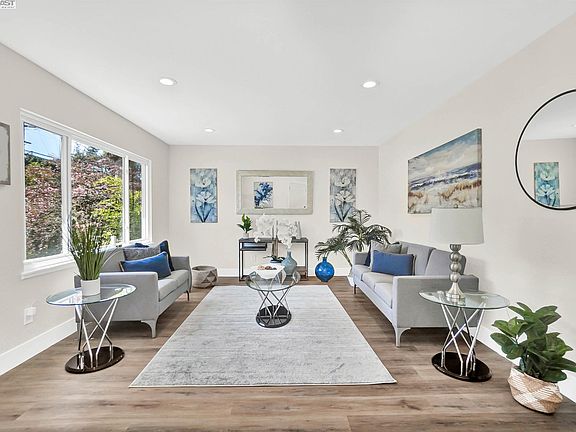 Gorgeous, freshly remodeled home in move-in condition! Dream kitchen includes quartz counters and all brand new, stainless steel appliances: gas stove, built-in microwave & dishwasher, fridge with water & ice dispensed through the door. Dual pane windows and recessed lighting to create a bright and cheerful ambiance day or night. You'll appreciate the attention to detail, with a fancy roll up garage door, modern front door, new 6-panel interior doors, sliding mirror closet doors in all bedrooms, matching/coordinated fixtures in the remodeled bathroom. Luxury vinyl flooring throughout, along with the neutral colors. Low maintenance, drought resistant back yard includes a deck as well as pavers throughout. Ideal location is close to public transportation, BART, freeway entrances, shopping. Don't miss this turn key home!