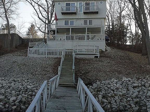 Kitchen has granite counters and brand new appliances. New paint, fixtures and flooring. Lakefront with large dock. 32x12 slip with boat lift. Large garage, with stirage above garage. 3 story. Updated heat pump. average electric $125 mth. Well water and water softener. Updated septic. On the water.