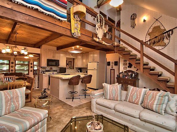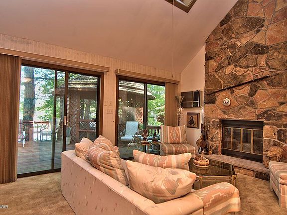 POWERBOATING LAKEFRONT HOME in a four season amenity filled community that offers a resort lifestyle two hours from New York City with every amenity imaginable. This home was always filled with love and laughter. Whether spending the day lakeside on your enormous deck with screened in gazebo, or boating and swimming from one of your two docks. At days end, relax in the jacuzzi room, or one of the two family rooms. The open floor has a great room concept with cathedral ceilings, fireplace, a beautiful kitchen that leads to a huge family room with vaulted, pine tongue and groove ceiling. This home also features a loft, finished lower level with family room and hot tub, expansive decking, two sheds to name a few. Level Driveway!, Beds Description: 2+BED 2nd, Beds Description: 1Bed1st, Baths: 1 Bath Level 1, Baths: 1 Bath Level 2, Baths: 1 Bath Level L, Eating Area: Dining Area