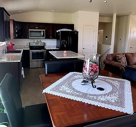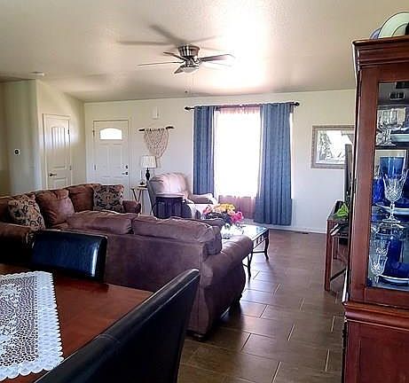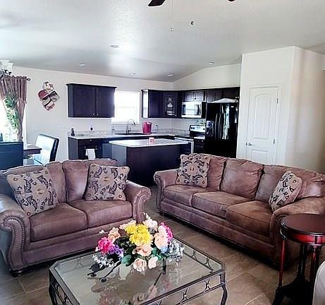 Don't let the lack of landscaping fool you, this home is METICULOUSLY cared for. Open floor plan - perfect for family gathering with its 9' pan ceilings in the living room, dining room and kitchen. Beautiful tile flooring throughout the Livingroom, dining room, kitchen and hallway. Nice size master bedroom with walk-in closet and 4 pc master bath, over sized garage (25' x 27') and 1025 square feet finished in the basement to include a spacious family room, large 4th bedroom that is built as a second owners suite with a full bathroom. There is plenty of storage space and 95 % efficient Armstrong furnace. It sits on over an acre of land and is close to I-25 and shops.