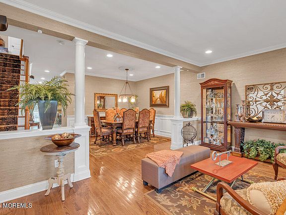 Welcome to this stunning townhouse with decorative molding, recessed lighting, and elegant hardwood floors throughout. The Dining room has wainscoting and decorative columns The eat-in kitchen boasts upgraded cabinets, granite countertops, a ceramic tile backsplash, and newer updated stainless steel appliances, with sliding doors leading to a beautiful Trex deck. The family room is with a gas fireplace. The master bedroom offers cathedral ceilings and two walk-in closets. All of the bedrooms are equipped with custom built in closet cabinetry. The master bathroom features custom vanities, jacuzzi tub, and a stand-up shower as well. Enjoy the comfort of brand-new 2-zone A/C and heating systems. Relax on the lovely front porch. Just 2 minutes from the beach and public boat access.