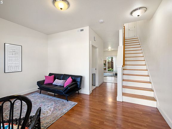 Welcome to this charming 2-bedroom, 1.5-bathroom townhome nestled in the desirable Victoria Cottages community. Built in 2012, this home offers a functional layout designed for modern living. The main level features a versatile floor plan with two multipurpose living spaces, one of which opens to a well-appointed kitchen complete with gas range, pantry and an entrance to the private backyard and secure storage. Upstairs, you'll find two ample bedrooms, with big closets, a full bathroom, and a convenient laundry area complete with washer and dryer. Laminate flooring throughout the home provides easy maintenance. Kitchen floor & both bathrooms floors updated 2024 with new waterproof vinyl. Back bedroom flooring also updated last year with new engineered flooring. The covered patio and front porch offer inviting outdoor spaces. With off street parking and additional visitor parking you'll be happy to have friends and family come for a visit to enjoy your new home! The low monthly HOA fee helps keeps the exterior well-maintained. Ideally located close to schools, parks, shopping, and public transportation, this townhome offers a wonderful blend of comfort, style, and convenience.