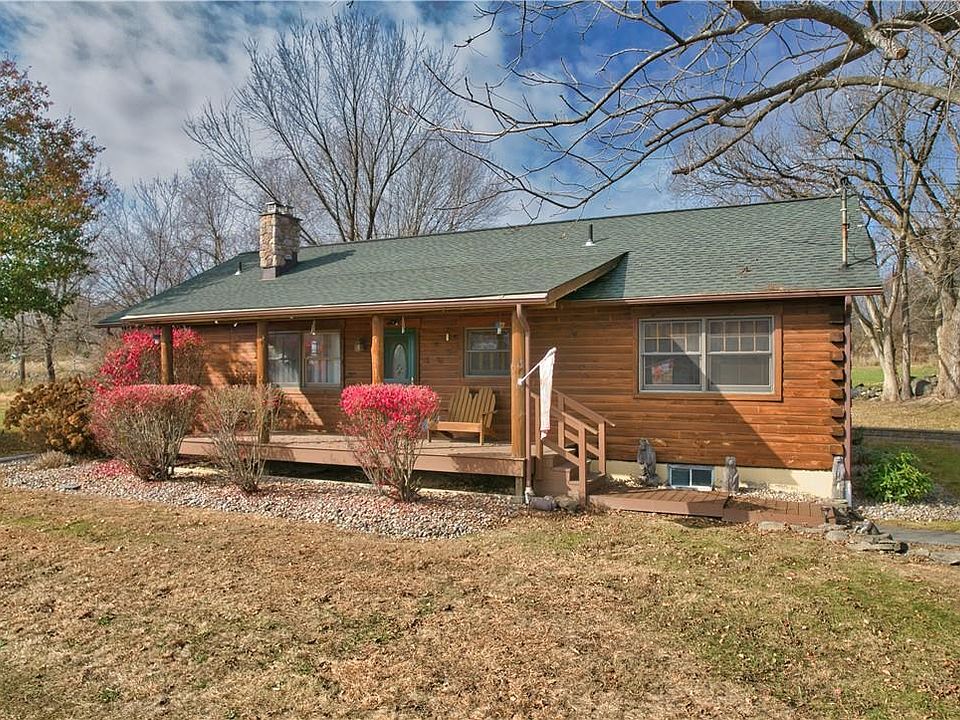 Come see this adorable 2 bedroom 2 bath Ranch style log home on 4.6 acres. This home has a lovely front porch that is inviting and space enough for your outdoor furniture to enjoy the fresh air and lovely views. Step inside to your cozy living room that has that relax and enjoy feel. The kitchen has beautiful solid wood cabinetry with an eat in space for your table set. Large formal dining area and cozy living room. Rite off the kitchen is a huge screened in room for chilly or warm evenings to have a meal or enjoy the lovely views of the property. Primary bedroom is very spacious and the primary bath boasts a slipper tub for relaxing soaks. the second bedroom is lovely and is set at the other end of the ranch. There is another full bath. Full unfinished basement with B-Dry system. All kitchen appliances included, washer and dryer in basement. Large detached garage for car storage. Beautiful large back yard for your gardening dreams. Additional Information: HeatingFuel:Oil Above Ground,ParkingFeatures:2 Car Detached,
