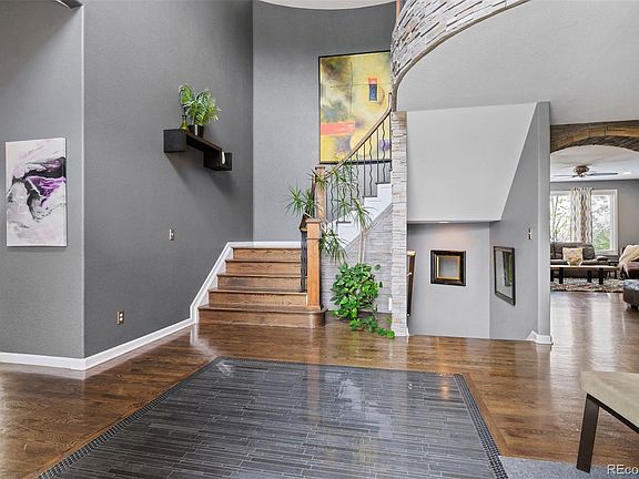 $86,000 Price Drop! Amazing Value! Welcome to prestigious Enclave of Hidden Pointe in Castle Pines. Beautiful, expansive home boasts an open, flowing floorplan with an additional 2100 square foot unfinished WALK-OUT basement ready for you to expand your dream beyond 6200sf finished. As you walk thru the dramatic grand 18 foot vaulted foyer, your taken back by the custom designed tile enlay, Romeo / Juliette balcony, wrought iron staircase and stacked stone walls. The massive gourmet kitchen is a chef's dream with ez clean cooktop, double ovens, large island, stainless steel appliances, large pantry and ample updated cabinet space. The kitchen begs to entertain as it flows to the large BBQ deck and outdoor sitting area. Tons of natural light and beautiful rich wood floors span the entire main level including a bedroom with full bath for guests or grandma - also works well as a work from hm office. Up you'll find 4 large bedrooms with two en-suites and a Jack and Jill bath. The updated master suite is your expansive, private oasis with fantastic views. It boasts a cozy sitting area with 3 sided fireplace and a gorgeously remodeled bathroom and large walk-in closet. EZ care, low-maintenance yard. Recent updates incl new garage doors, paint in and out, carpet and updates to kitchen and master bath. Invisible fence installed. Award winning Douglas County Schools, 2 hospitals nearby, numerous dining options, several top notch golf courses and easy access to DTC, I-25 or E-470. Near open space, bike trails and walk to 14 acre Coyote Ridge park with basketball, playground and new pickle ball courts coming soon. You found it - space, elegance and style in Castle Pines, welcome home! Note: Check out 573 Raechel Pl (1/2 block away) exact same floor plan SOLD for $1.3m. Take a 3d tour and watch the video: https://listings.thedenvercreativegroup.com/sites/ypwkzex/unbranded