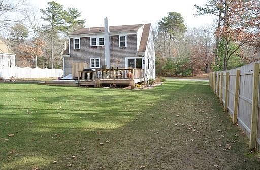 You are going to love this turn-key Cape down a quiet dead-end road! Boasting a large, newly fenced in yard, large two tier decks and ample parking on improved driveway- this home is ready for your next family get together! Rinse off in the new outdoor shower, after a long day on Sandy Neck. Inside, you will find gleaming hardwood floors throughout, a remodeled kitchen with stainless appliances and quartz counter tops. Both upstairs and downstairs bathrooms have been updated with tile and granite counter tops. Enjoy movie night in the newly finished basement, or send the kids down to enjoy a playroom! Also new, hot water heater and fresh paint. Too many upgrades to list, come check this home out today!