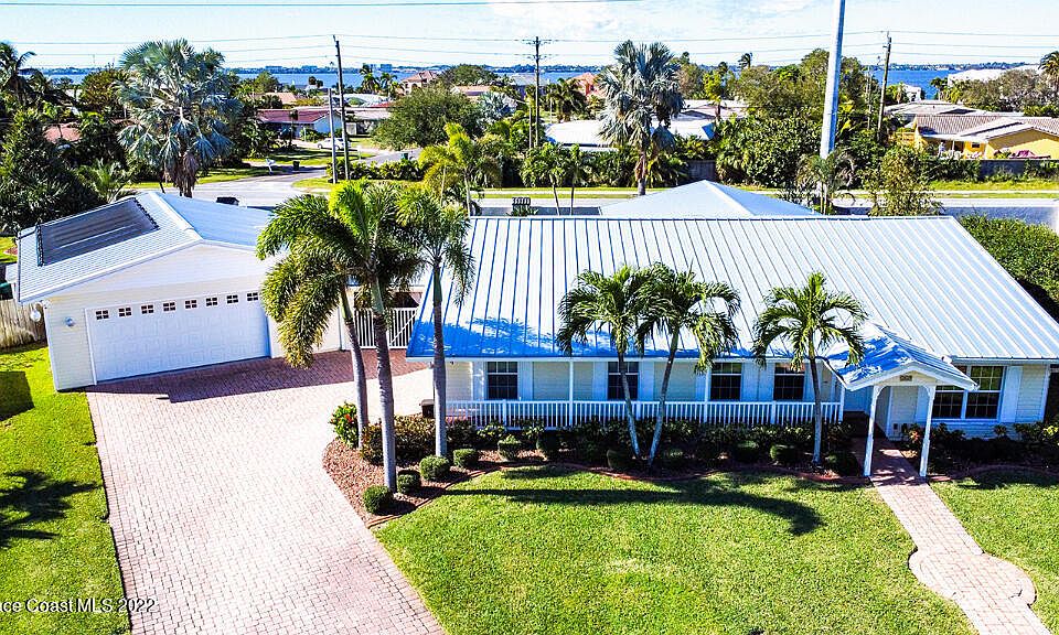 VERY MOTIVATED SELLER. MAKE AN OFFER. This beautiful move-in ready renovated concrete block home is a must see and boasts an open floor plan with lots of storage. A separate 1,200 sq ft air-conditioned garage with an 8 foot high garage door could be an auto enthusiasts dream, huge game room, in-law suite or guest house. The large breezeway, free-form salt water pool surrounded by pavers, and lush landscaping provides a private tropical oasis perfect for hosting any occasion. Additional features include a child safety fence, outdoor shower, wireless controlled sprinkler system, storage shed with electric and lights, concrete curbing, rock islands, and a driveway security alarm. Walking distance to the beach and conveniently located between the Melbourne and Eau Gallie causeways.