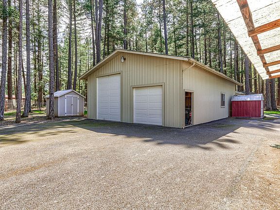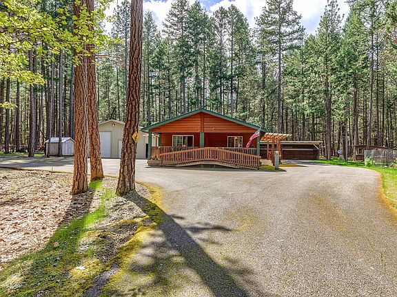 Welcome to the Good Life. Enjoy everything that nature has provided. Beautiful wooded 4.84 acres that is level, fenced and gated. Featuring a 2 bedroom 2 bath home with 1296 sf, metal roof, and built in 2005. Open floor plan with an abundance of windows to bring in the natural light. Spacious kitchen with island, breakfast nook and slider to the covered deck. Cozy wood stove will warm you up quickly. An amazing shop with 1,342 sf and roll up doors for RV/Boat storage. Machine shed, poultry coop and numerous storage buildings. Covered deck will be a great spot to entertain family and friends. Well log shows 11 GPM when drilled. Bring all your animals. Wonderful spot to call HOME. Put this one on your list to show.