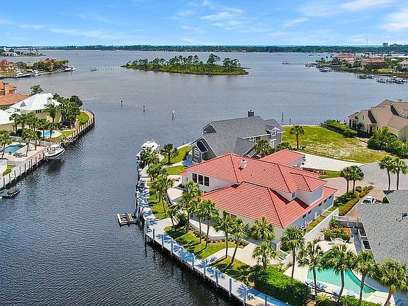 This is a beautiful waterfront home in a quiet cul de sac, located in Bay Point with an incredible 155 feet of deep water seawall. This home combines luxurious living with unprecedented boating accommodations. In addition to being in the highly coveted area East of the bridge, this property has enough room for a Sportfish, a bay boat, and two Sea-Doo lifts. The Gulf is just minutes away from this location. Inside this move-in ready home, you will find an open floor plan with plenty of room to entertain friends and family. This home features four bedrooms and four and a half baths with a bonus office/bedroom. You don't want to miss this opportunity, CALL TODAY!