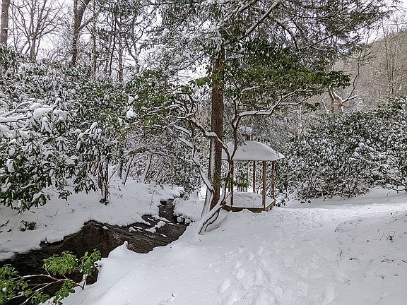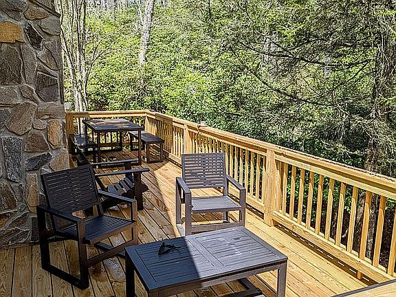 This is truly a one of a kind property. Several waterfalls on property, and paths that run along creeks and waterfalls. The house is located next to a stepping stone natural waterfall that provides a beautiful view of the creek and that pleasant sound of rushing water. A gazebo is located creekside for reading or just relaxing. Very private setting with long easy access driveway. Elevation over 4,000' for cool summer and fall days. House is turnkey for rental or second home. Everything is included from all furniture to place settings and cleaning supplies. Stone fireplace that was once wood burning is now gas logs. Could easily be converted back to wood. The deck has just been replaced in it's entirety, and offers the ultimate spot to enjoy the sunshine and listen to the rush of water below. Wonderful path on the property for great walks along the creek.