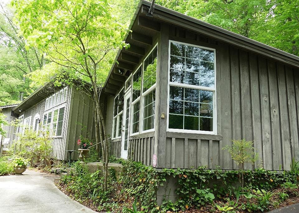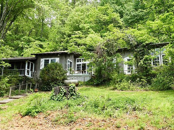 Phenomenal "Artist" 4 bedroom home on 8.58 acres with a nice view in Franklin NC. This home has 2 kitchens, a huge bonus/living room with attached Sun Room, screened porch and decks. The home has oversized windows for great lighting. Wormy Chestnut paneling, hardwood floors, vaulted ceilings! There are two garages and workshops, paved to the door and lovely gentle land with awesome garden spots and pasture. Pretty long range view easy access and just a few miles West of town. You have to see this one to believe it. The home is very well thought out and is a "Writer's Dream"! Lots of updates without disturbing the OLD WORLD CHARM from 1945. Terraces and walkways abound. This home has it all and would be perfect for a large family and anything in between. 2 Central A/C Units, propane, electric and wood heat.. 2 wise fireplaces, a large chicken coop, goat barn, and lovely landscaping.. Heaven on Earth.. This home is only 6 miles from the Appalachian Trail. see the photos...
