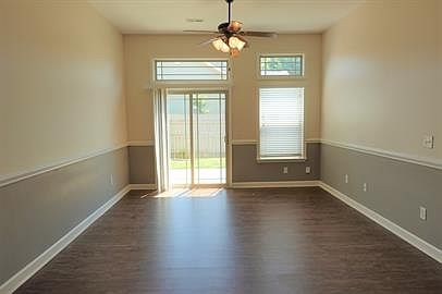 This lovely town home is one level, very elegant and has a one car garage. The town home is open, beautiful kitchen with granite counter tops, lovely cabinets and an island. There are luxury vinyl floors. There is a small fenced back yard. Very elegant. There is a driveway and one car garage. The neighborhood has sidewalks to walk.