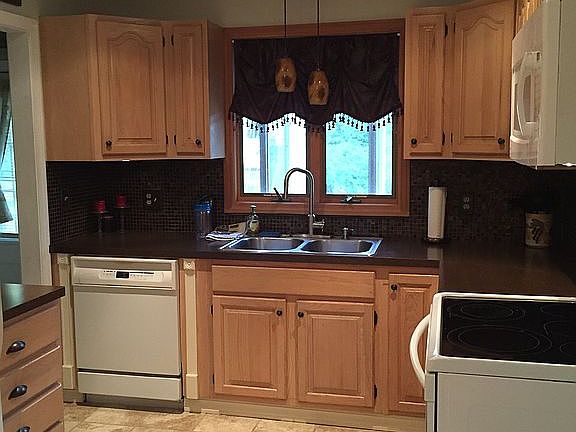 Updated 6 rm. raised ranch with newer siding, roof and kitchen. Half bath off Master bedroom. Level fenced in on .40 acre private lot with 2 sheds. Huge rear deck. Semi finished room in lower level. Great value. One year home warranty included.