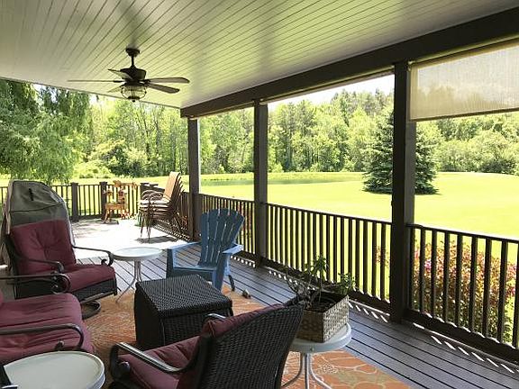 Make your memories here. This homestead offers 9 bedrooms, 2 separate living rooms, 2 kitchens, 2 driveway & 2 entrances. Currently single family but could be 2 family easily. Pastoral back yard with 3.5 acres and a {stocked} pond! The wrap around deck with ceiling fans and shades is a perfect perch for watching wildlife & hosting friends & family. Raised bed gardens. The stone enclosed porch has a wood burning fireplace for entertaining and enjoying chilly evenings indoors. All this only 3.6 miles from the village! Welcome to your new home.