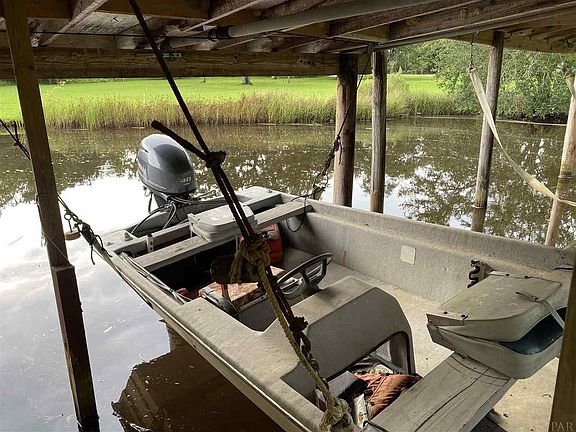Bon Secur is known for its high quality oysters. This area is truly a unique community. You are close to Fairhope, Orange Beach, The Wharf and OWA. Situated on 2 lots and 150 feet of water frontage, you have the ability to fish freshwater and saltwater within minutes. This 3 bed 2 bath home on Safe Harbor is a short boat drive from Mobile Bay. The boat house has two slips with a fish cleaning shed. The boat also comes with the house and has a new Yamaha 40hp four stroke motor. There is a large workshop/garage on the property as well which enables you to tinker with all of your hobbies in a dry area. The home does come fully furnished and is being sold as is. It has been previously used as a getaway home/fish camp. There is a 2 car garage with an elevator that makes the home handicapped accessible. There is a large back deck overlooking the harbor where large gatherings could be hosted to watch the sunset. If you want a quiet, southern feel, rich in culture home, this is it, or if you want a fish camp to get away to on the weekends perhaps this is your place. Again, all furnishings convey except a few personal items such as pictures etc. Square footage is approximate.