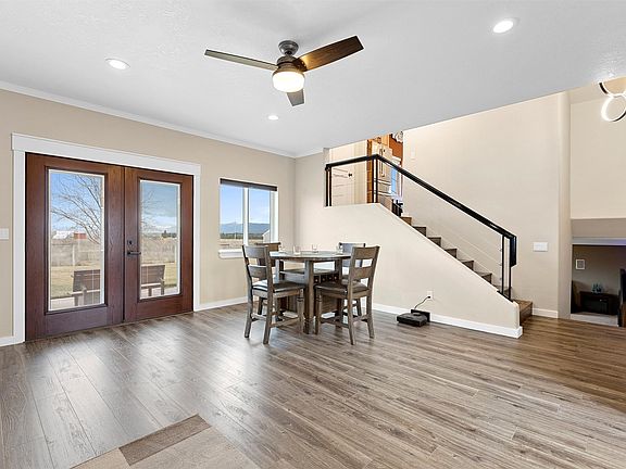 Bask in natural splendor with this immaculately maintained, light-filled 5-bedroom, 3-bathroom sanctuary nestled on 1.63 tranquil acres. Breathtaking vistas of the majestic Bitterroot Mountains greet you through a wall of windows in the sunbathed entry room. The renovated kitchen dazzles with granite counters, rich custom hickory cabinetry, & stainless-steel appliances. Luxurious plank flooring & plush carpets unite the interior in modern elegance. The main floor hosts the kitchen, dining, living room, primary bedroom w/bath, 2 additional bedrooms & full bath. The daylight lower level provides an inviting retreat with a spacious family room, built-in concrete gun safe, 2 additional bedrooms, full bath, and laundry room. Extend your living outdoors to the west deck, south patio, firepit, and horseshoe pit - perfect for savoring stunning sunsets and mountain panoramas. The attached extra-deep two-car garage offers ample space for vehicles and storage, while a third garage door provides seamless backyard access for moving equipment, recreational items, or landscaping supplies with ease. An asphalt driveway ensures minimal dust and easy maintenance. This exceptional property offers a serene blank canvas to craft your dream lifestyle amidst awe-inspiring natural beauty. For a showing call Beckie Peterson 406-829-6003, Diane Beck 406-360-7654, or your real estate professional.