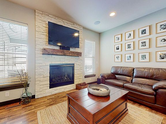 This beautiful 6-year-old condo is located in a family-friendly neighborhood, in a country setting, and on Hunter's Ridge Golf Course. The main level has carpet, hardwood, and tile floors, an office/study, and features a fireplace. Also on the main level are 2 bedrooms, 2 full baths, and laundry. The kitchen features hardwood floors, granite counters, a tiled backsplash, gray slated appliances, and breakfast bar. Appliances stay with the home. The primary bedroom is on the main level and features carpet floors and a walk-in closet. The primary bedroom's attached bath includes tile floors, quartz counters, and a tiled shower. The partially finished lower level features a wet bar, bedroom, full bath, office/study, workout area, and storage area. Outside you'll find a covered composite deck that overlooks the #9 hole! Exterior features include a great view and a lawn irrigation system. Many upgrades throughout and a convenient location. Call or email today for a private showing.