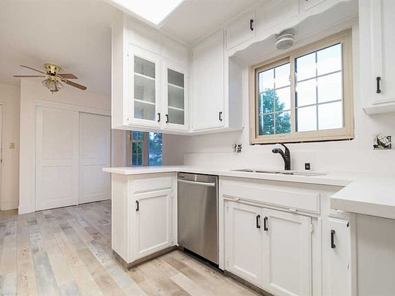 Welcome to this beautiful 3 bed, 1.75 bath home nestled in a peaceful and quiet neighborhood, conveniently located near schools, shopping and dining. Enter the home and immediately fall in love with the functional floor plan, including gorgeous plank style flooring and dual pane windows, as well as brand new paint, carpet, hardware and fixtures. The living room is centered around the beautiful fireplace and leads into the kitchen, finished with quartz countertops, built-in stainless steel appliances, and dining nook by the bay window. Head to the master bedroom to relax after a long day, equipped with a walk-in closet and an ensuite bath with a dual sink vanity, shower, and outdoor access. Outside, entertain guests on the large covered patio or the generous lawn area. Contact our team today to schedule your private showing!