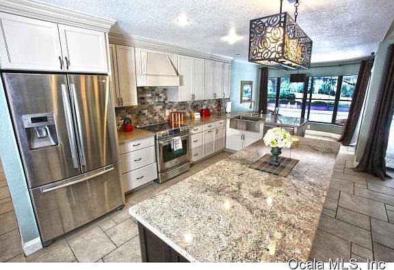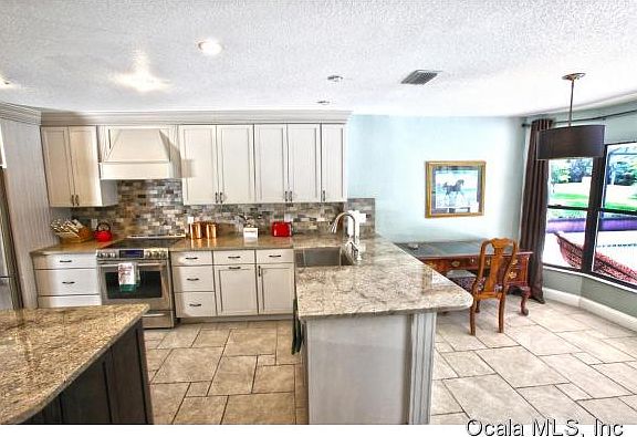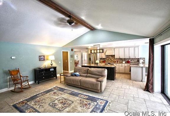 Lovely open floor plan with updated kitchen, and spacious living areas. Fireplace and sliding glass doors in family room lead out to sparkling salt pool, all screen enclosed. Split bedroom floor plan. Large Master Suite with dual sinks, fully tiled shower, and corner bathtub. New landscaping on charming street canopied with granddaddy oaks. Located right on the golf course of Golden Hills Turf & Country Club.