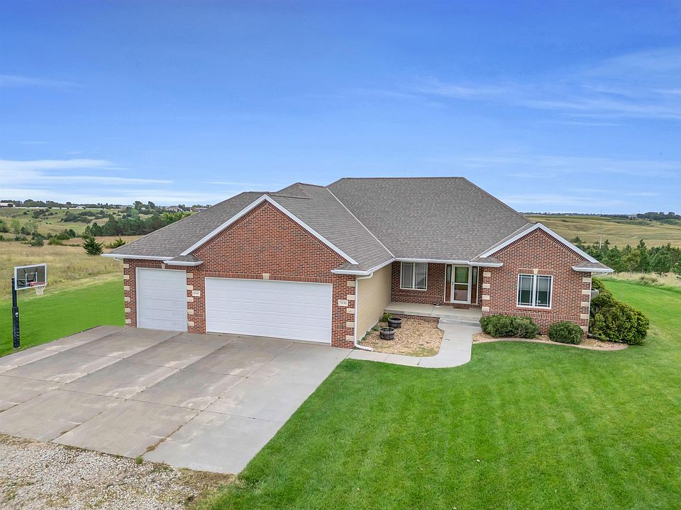 Nestled in the northwest enclave of Kearney, this home presents an opportunity to claim your slice of modern Midwest luxury on a 10.11 acre lot. The impeccably crafted haven boasting ample opportunity with 1984 sf on the main floor. The thoughtfully designed floor plan unfolds across an open concept that seamlessly blends contemporary elegance with everyday comfort. Underground sprinklers and an underground dog fence that encompasses the 10 acres. Lots of trees including a peach tree. All stainless steel appliances including an induction range, granite countertops with an eat in bar, cherry cabinets with soft close drawers, spacious dinette, beautiful stone fireplace, walk-in pantry, huge basement family room with wet bar, 6-panel oak doors throughout, Anderson windows, and basement exercise room could potentially be bedroom #6. This turn key gem won't linger. Schedule your private showing today, and step into the lifestyle you've always envisioned!