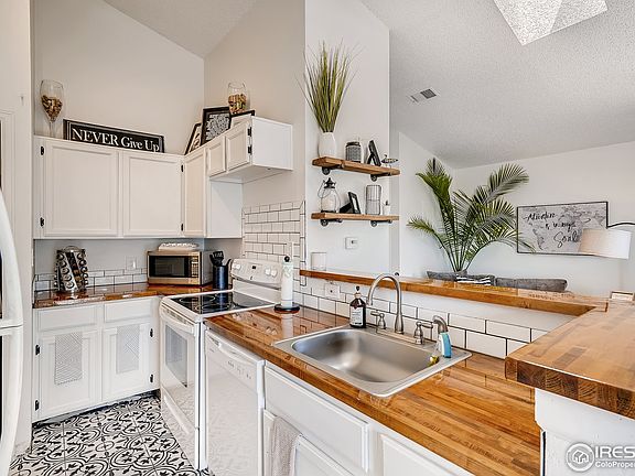 Upraded penthouse condo in Arbor Pointe with cathedral ceilings & skylights filled with natural light. Newer flooring, hip Merola tile, white subway tile, butcher block counter tops and crisp white cabinetry and appliances. Newer AC, furnace and water heater leave you with nothing to worry about! Community clubhouse, pool, park and tennis courts. Conveniently located within a short walking distance to Lake Arbor, short drive to Standley Lake and a close distance to the Boulder Turnpike & I25