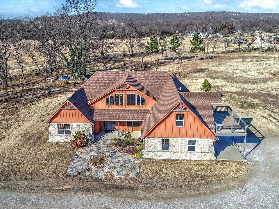 Easy commute to Tulsa! Custom built Timber frame home. Features include: 1.5 stories, 4 bed, 3 bath, 2 car garage, granite countertops, stained concrete floors, natural pine loft floor, game room, lg loft & balcony. New paint & carpet 2019. This energy efficient home Has 3 geothermal units, energy efficient windows, doors, lighting & appliances witch results in low utilities! Extra features include: Koi pond, 2nd detached 2 car garage, dog run, pond creek and more. More land & shop Available MLS:2017434