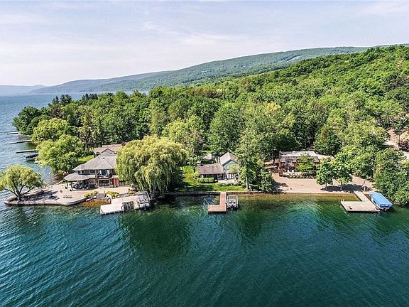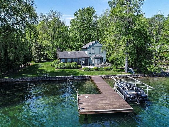 Year around 4 bdrm 2 bath waterfront home located on quiet, safe, scenic bay with great view of the lake and hills.Living room with natural stone floor to ceiling fireplace and vaulted ceiling and lake view, kitchen with island seating and dining area with lake view. Huge screened porch on lake side with panoramic views of the lake and hills. Large master bedroom on first floor and 3 bedrooms on second floor. Large permanent dock, Trex deck, stone break-wall complete this wonderful home This is an area of multi-million dollar homes on Seneca Point. Priced below assessment, approved septic system, move in ready; be in before summer. Furnishings negotiable. Bring you boat, kayaks and enjoy all that Canandaigua Lake offers.