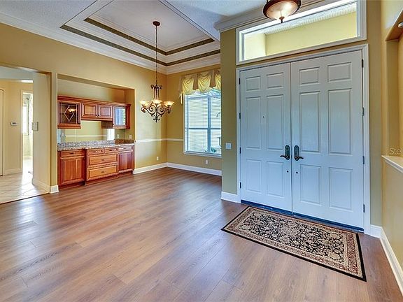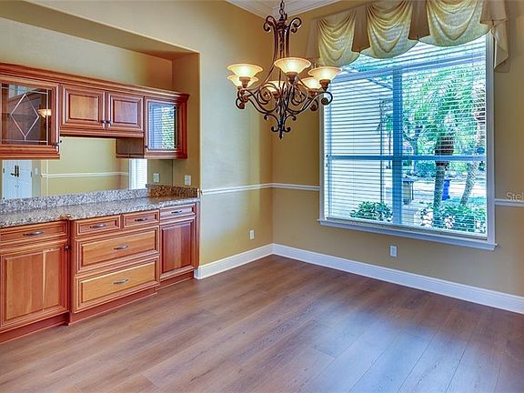 - Interior Features: High Ceiling(s), Open Floorplan, Split Bedroom, Stone Counters, Crown Molding, Solid Wood Cabinets, Kitchen/Family Room Combo, Built in Features, Tray Ceiling(s)