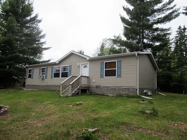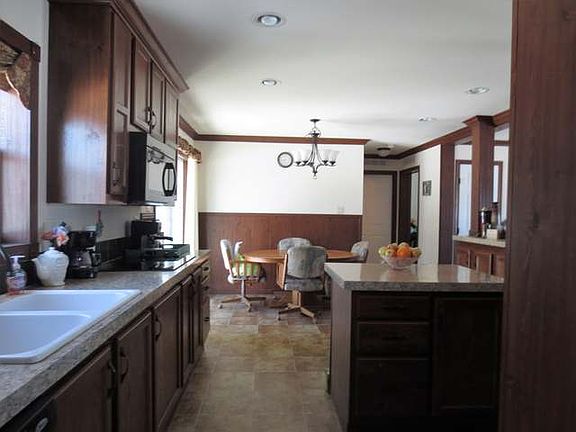 Manufactured meets modern decor! You will be amazed at the modern cabinets, crown molding, quality laminate counter tops, build in cook counter top and stove. The wood cabinets are accented with black appliances giving it a rich look. This interior design flows throughout the home... even into the bathrooms. Master bedroom suite, walk in closet and full bathroom with double sinks, main floor laundry, spacious lake side facing living room, 2 adequately sized bedrooms and full bath complete the interior. The views from the home span the lake and offer a morning sunrise. A 2 car detached garage, deck and gradual slope to the waters edge complete this home. Come take a look and see the fine details the Seller put into the home.