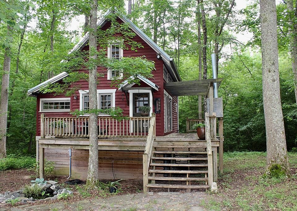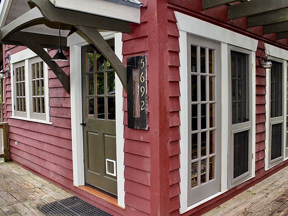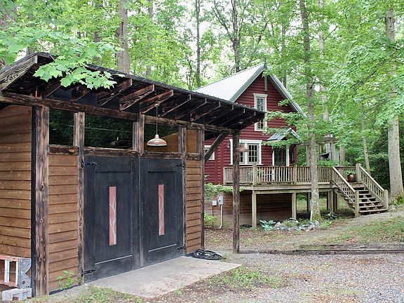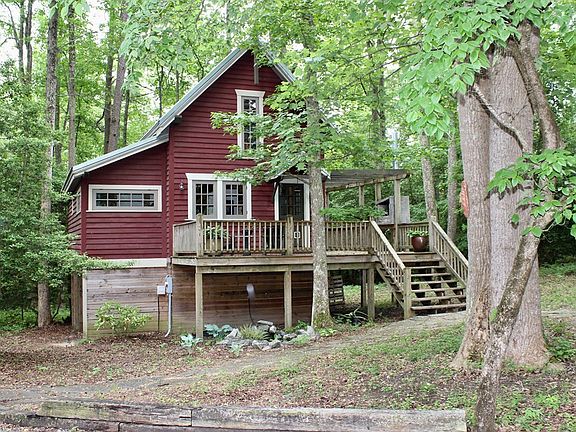 Beautiful Craftsman style home nestled in the woods on .64 of an acre lot. The home features 9 foot plus ceilings, wide plank pine floors, vaulted ceilings with exposed wooden beams and a stained glass window. The galley style kitchen has (propane) gas stove, gorgeous cement and glass countertops and wooden cabinets with copper accents. The master bedroom has floor to ceiling windows that bring nature right inside. A second floor bedroom is right off of the spacious loft that overlooks the kitchen and great room. Wood burning fireplace on the deck. Detached garage is being used as a pottery shed.