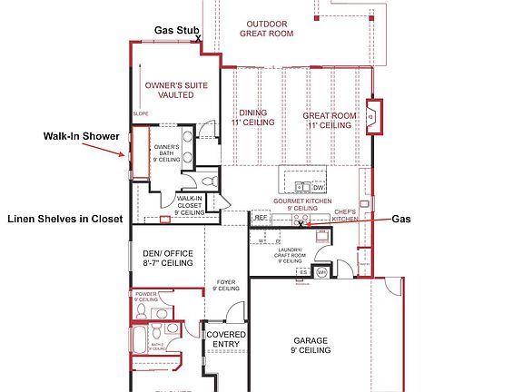 • Fireplace-Gas, Kitchen Island, Live on One Level, Master On Main, Raised Ceilings 9+ft, Smoke Detector(s), Walk-In Closet(s), Wash/Dry Connection, Beamed Ceiling, Utility Sink, Garage Door Opener(s)