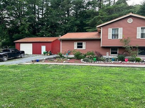 Great country setting for this 4-5 br quad level home with 2 full baths and additional hookup in basement for bathroom. Theres a huge family room with gas fireplace, spacious living room and dining area that overlooks a large patio w above ground pool. Theres hardwood floors throughout and ceramic tile in the bathrooms. The home has newer siding and roof, furnace and central air in 2016. The home has a 2 car attached garage that walks into the basement. Theres an oversized pole building garage 32 x 24. W concrete floor and electric for all your storage needs. Nice level yard thats nicely landscaped and the home sits off the road for added privacy. Call for a private tour