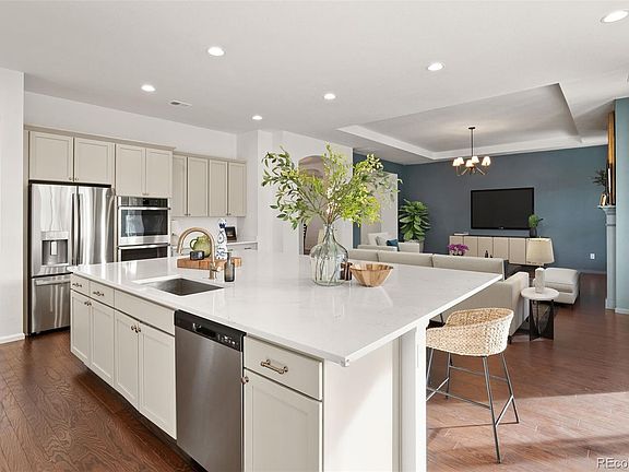 Welcome to a designer’s dream in Cobblestone Ranch — a rare, luxurious ranch-style home on 1.38 private acres which backs to an expansive open space . From the moment you step inside, you’ll feel the elevated vibe of this one-of-a-kind property. This home blends thoughtful design, everyday function, and jaw-dropping style in a way that few homes can match. The heart of the home is an open-concept chef’s kitchen, decked out with a massive entertainer’s island, high-end stainless appliances, an oversized walk-in pantry, and a sleek butler’s retreat – ideal as a prep space, storage zone, or even your Zoom Room hideaway. Natural light pours into the main floor, highlighting the designer finishes throughout. A formal dining room, grand family room with cozy fireplace, and a statement-making foyer create an unforgettable first impression and make this home perfect for entertaining. The Primary Suite is an absolute sanctuary – think high-end boutique hotel vibes. Custom, on-trend finishes, luxe textures, and a soft, stylish palette give this room true retreat energy. The spa-inspired bath features a stunning walk-in shower, soaking tub, dual vanities, and a massive walk-in closet. The opposite wing hosts two guest bedrooms connected by an upscale full bath – offering comfort and privacy for visitors or family. A powder bath, drop zone off the split 3-car garage, and main floor laundry complete this main floor. This basement is next-level. Bold designer color drenching techniques turn this space into a true vibe, equal parts party zone and chill lounge. You'll find a full bar, movie room, and a dedicated gym/kids zone. Plus, 2 more guest beds and full bathroom mean there's space for everyone. Enjoy Colorado living year-round with a covered back patio, extended outdoor entertaining areas, and the serenity of private land. Colorado House Bill 24-1152 Passed Mandating Approval of ADU from City, County and HOA entities