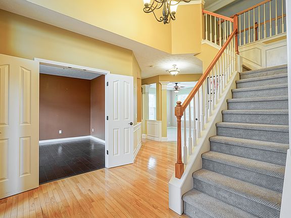 Welcome to your new home centrally located in Carmel with over 2900 sq ft above ground plus a finished basement. This beautifully built 5 bed, 3 1/2 bath home greets you with a tall 2 story entryway and hardwood floors. The main level features a front office, sunroom, family room with soaring ceilings, big kitchen with center island, and a formal dining room. The upstairs has the large master suite with vaulted ceilings, a jetted tub, and a double closet, and 3 good sized guest rooms. The 9ft tall basement was recently finished with a theater room, pool table, wet bar area with granite countertops and beverage fridge, and 5th bedroom with an ensuite full bath. The home backs up to a large common area, so the yard with mature trees feels huge for any kind of outdoor activity. Newer water heater and HVAC. Come see it today!