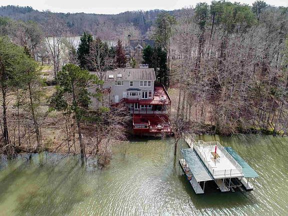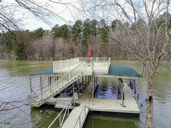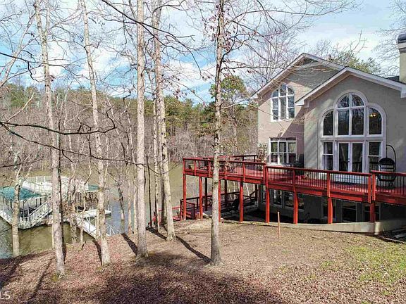 This is it! The perfect lakefront home on a point lot w/ Corps line & huge decks nearly in the water! So close, you could toss sunscreen fron deck to dock. Home sits at water's edge w/ year-round Lake Lanier panoramas, fabulous open floor plan, views from almost every room. Soaring ceilings, walls of windows framing the view, gourmet kitchen & 2 BRs on main. Spacious master suite w/ views, 2-sided fireplace + big bonus room upstairs. Entertainer's dream w/ huge terrace level, wet bar, decks o'looking lake, hot tub. SHORT flat path to dbl-slip party dock in great water.
