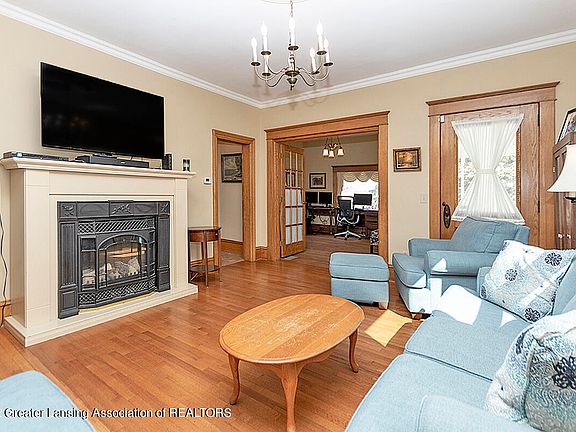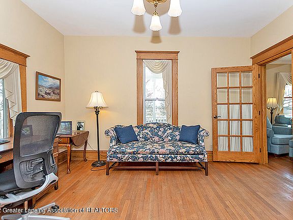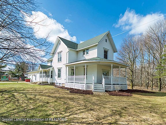 Amazing country living with this beautifully updated home on 3+ acres. Located near the 27 Price Rd exit, it offers easy access to Lansing, St Johns and all points north. Originally built in 1909 this home was lovingly updated in the 1990's and has spacious rooms throughout. Warm oak woodwork flows through the entire home with hardwood floors, special trims and solid wood doors. The large country kitchen has plenty of cabinetry with Corian type countertops, a center island with prep sink and a generously sized eating area. A 3-season porch welcomes you into the gracious formal dining room and opens to the living room.