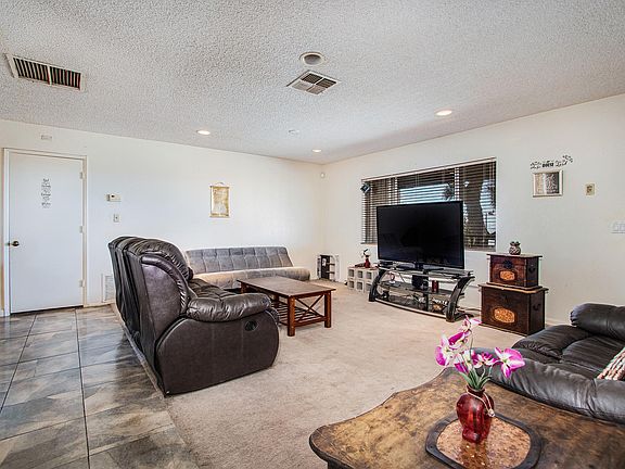 Large home on 5 view acres! Detached cabin adds space for office, guests, teens, arts and crafts, or anything you want. Main home features 3 beds, 2 baths, living room, dining area, and a family room. The family room has a wood burning stove and lots of built-in shelves and cabinets. The kitchen has loads of storage space and counter seating. The hallway offers more storage with several cabinets. Master bath features a walk-in shower. There is central heat and evaporative cooling. The 2- car attached garage has opener, laundry hookups, and a sink. The cabin features two separate rooms plus a 1/2 bath with wall furnace heat (note: there is no kitchen). The house sits up high and the views from the huge front porch are amazing! You can see city lights, mountains, and miles of desert vistas with plenty of wildlife. The natural desert landscape has been maintained with mature Junipers, Yucca, Joshua Trees, and a host of boulders. There is a small slab on the S side which could be a hottub pad. There is a concrete unused pond as well. The property is located adjacent to prestigious Western Hills Estates but has no HOA fees This is a quiet neighborhood with very little thru traffic going by the house. Just minutes to shopping and dining, close to JT Nat'l Park, Pioneertown, and other desert attractions. Property is outside the current sewer conversion zone so it will remain on septic. Sq ft includes cabin Please do not disturb tenants. Note: Listing agent is related to seller.