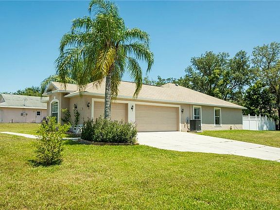 Welcome home to this Spring Hill Beauty! This Original Owner 3bedroom 2 bath, 3 car garage pool home will check all your boxes! As you enter through the double entry leaded glass doorway the vaulted ceilings and beautiful view of the sparkling salt water pool great you. The large screened lanai, heated pool with new solar panels, and large patio with no rear neighbors is perfect for entertaining all year long. The master bedroom with ensuite, his and hers closets, soaking tub, and private entry to pool is split from the two guest rooms perfect for families or in-laws. Chefs will love the ample granite counter space, island, 42 inch solid wood cabinets, eat in bar, volume ceilings and plant shelves which make this space great for gatherings. Formal Dining and living room with plenty of natural light complete this beautiful home. Located close to shopping, Florida's sunny Beaches and easy commute to Tampa. One year Home warranty is included so schedule your showing today and make this home yours tomorrow.