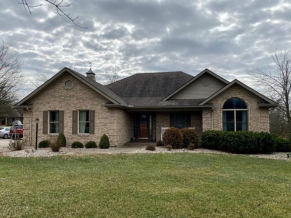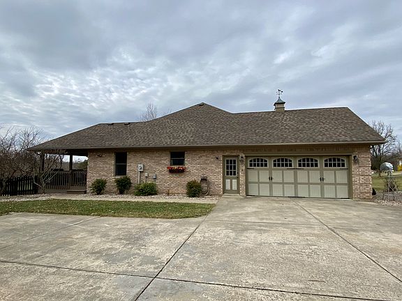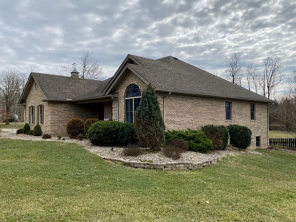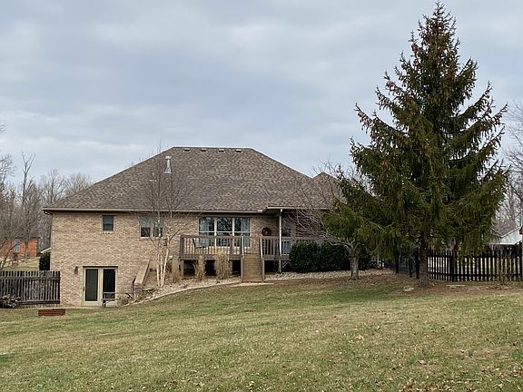 Beautifully maintained custom brick ranch. Approx 3,548 sq ft. 4 BR, 3 BA. Fenced back yard. Partially covered deck. Main Floor has 3 BR, 2 BA. Fully finished walkout basement with patio area has one BR with closet (no window), full bath with stand-up shower, wet bar with island, built-in office work space, entertainment center and loads of storage. Additional unfinished storage area with workbench and shelving. Large, partially wooded back yard has cedar fence with quaint storage shed and gazebo. Many flowering trees on property provide ample privacy. Over $30,000 in recent upgrades including: stacked stone fireplace with gas insert in great room, laminate wood flooring in kitchen, hallway and dining area, carpet on main level, landscaping, faucets, glass shower door, kitchen appliances, kitchen hardware, hinges and door handles, interior and exterior lighting, custom storage in garage with workbench, fence stained, fresh paint throughout. Roof replaced in last ten years. Low maintenance concrete driveway. Located in desirable Cedar Pointe subdivision between historic Corydon and Lanesville, Indiana. Excellent school district. 23 miles to downtown Louisville. 4 miles to I-64. Available to show evenings and weekends. I-64 to Exit 113. Go South on Lanesville-Crandall Rd for two miles. Turn right onto Rt. 62 (towards Corydon) for 1.8 miles. Turn right into CedarPointe Subdivision; stay straight to stop sign. Turn right; second house on right. We will provide a payment for any realtor who brings a client who purchases this home.