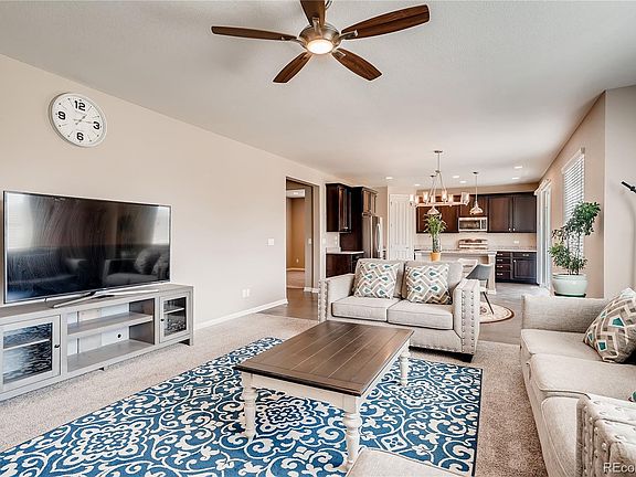 Beautiful ranch home now available in Castle Rock! As you walk in you are welcomed into a long hallway leading to main living area proceeds past the study or flex space. The kitchen is equipped with stainless steel appliances including, a gas range with double oven, convection microwave, refrigerator, and dishwasher, granite countertops, under-mount sink with touch faucet, island with breakfast bar and separate dining area. The open living area also has a gas log fireplace with blower, stone surround, and white wood mantel. Spacious master with walk-in closet and en suite bathroom. Both bathrooms feature dual granite surfaced raised vanities. Exterior living space, with extended covered patio backs to greenbelt, offers gas valve plus wiring for a ceiling fan and/or TV. Come check out this beautiful ranch home!