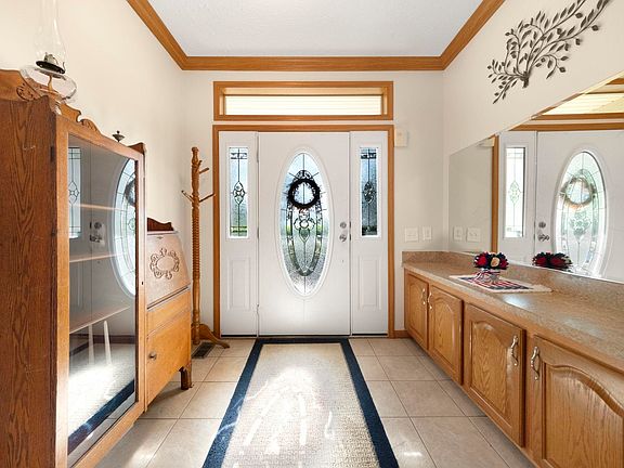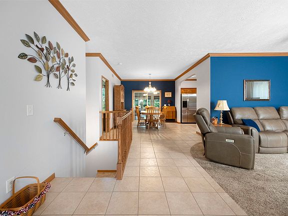 Country Living at Its Finest! Custom Home on 8+ Acres with Stocked Pond Welcome to your private country retreat, set on just over 8 serene acres of beautifully maintained land featuring a fully stocked pond, mature trees, and fruit trees. Step inside to discover soaring ceilings and a welcoming front living room complete with stunning stone fireplace. The oversized eat-in kitchen is a cook’s dream, boasting abundant cabinetry, generous counter space, and room to gather. Just off the kitchen, the bright and spacious family room is the perfect place to unwind or host guests. The main floor offers a thoughtful layout with three bedrooms and two full bathrooms. The primary suite features two closets and en suite with dual vanities, a jetted tub, and a separate stand up shower. Two additional bedrooms, a full bathroom, and a spacious laundry and utility room complete the main level. Downstairs, the finished walkout basement is built for entertaining, highlighted by a showstopping 16-foot white oak bar. With direct access to the concrete patio and picturesque views of the pond, the fun can easily flow outdoors. The basement also features a large rec room, an additional bedroom and full bath, a flexible bonus space, and expansive storage, including a storage area mirroring the size of the family room above. Outside, enjoy the peace and privacy of your own slice of the countryside. Whether relaxing by the pond, exploring the property, or tending to hobbies, there’s space for it all. A 30 x 40 pole barn adds even more room for outdoor equipment, toys, and storage needs and there is an additional shed complete with electricity near the pond. Don’t miss this rare opportunity to own a meticulously maintained country home!
