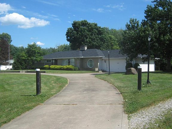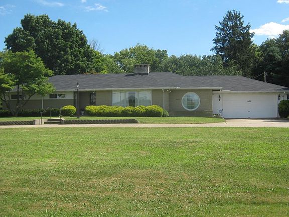 Almost an acre of land w/ a one of a kind stucco & stone ranch offers a fabulous half moon front driveway to the entrance of this gorgeous, approx. 2700 square ft. counting the finished living space in the basement, three bedroom, two & a half bath home! Excellent curb appeal w/ moon shaped window,an enormous picture window, & 5 gorgeous pole lights. Home also has a 360 sq. ft. back patio with a huge circular deck to tie in with the house theme. In addition, the property also offers a 1090 sq. ft. detached pole barn garage which was built in 1985 & offers plenty of room for a workshop/extra huge garage/or make into a mother-in-law suite! House has lots of nature stone, cherry kitchen & bathroom cabinets, an electric stove & a separate oven, reverse osmosis system, & 1st floor laundry!