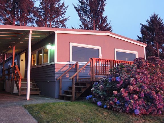 Well cared for 3 bed 2 bath manufactured home with nice ocean views. New water heater, vinyl windows, laminate flooring, interior paint and large deck. Carport and paved driveway. Water heater just replaced.
