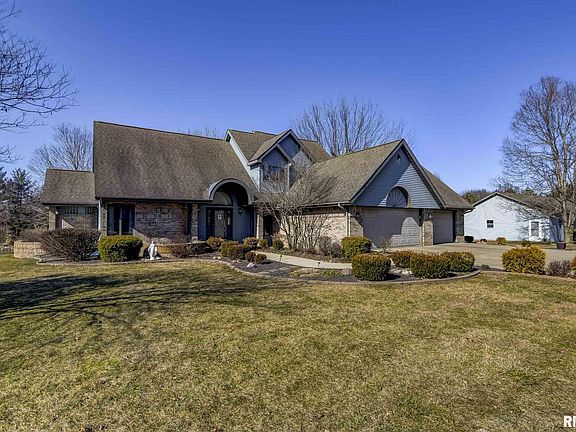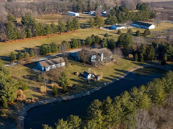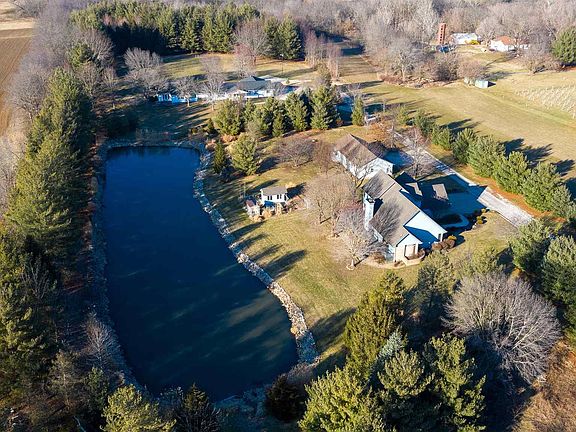 Built by Michael von Behren Builders, the well-built home is the centerpiece of this fabulous 5-acre property. It offers stylish architectural features such as curved walls, arched entryways, and vaulted ceilings, as well as multiple living spaces for everyone to enjoy. The main floor master bedroom is en suite with jetted tub and walk-in shower and has direct access to the full-length deck on the back of the home. Once outside, you are surrounded by nature at its best: wooded area, two ponds, the larger one having a paddle boat and stocked with catfish and blue gill, a greenhouse, a shed, and a 6-car detached garage for the car enthusiast. A virtual paradise for the outdoorsman or hobbyist! Improvements include newer subway tile backsplash, dishwasher and refrigerator in the kitchen, Generac generator, and a sludge uplift motor. Offering price includes a newer Kubota tractor and Ferris zero-turn riding mower, as well as the pool table and equipment. Country living very close to town!
