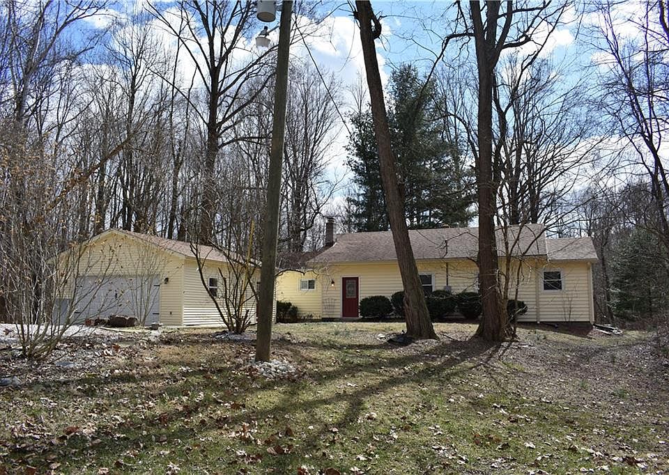Absolutely gorgeous 3 bedroom ranch on 2 acre wooded lot that has been totally updated. Brand new tile & laminate flooring thru-out, new ceilings, new paint, trendy white trim, new interior doors, formal dining room leading to deck, kitchen w/granite countertops, new appliances & sink and pantry, large entry/sitting room w/cozy wood stove, updated bath & laundry room w/washer & dryer, master bedroom w/his & her closets and large 2-car detached garage w/power. Perfect!!