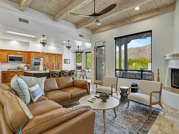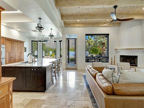 This home is managed by BookTucson LLC, which specializes in offering upscale furnished rental homes with flexible leasing options. All of our homes are available furnished but can be offered unfurnished for leases of 12 months or longer. We gladly work with individual renters, corporate housing agents, insurance companies, and more. About this home: This beautiful home in located in the heart of the Catalina Foothills. Privacy, serenity & mountain views await you on this large private lot. Natural stone tile throughout all walkways & living spaces, engineered wood flooring in bedrooms. Lovely wood beamed ceilings & oversized windows to take in the views. Remodeled gourmet kitchen featuring gas cooktop, double ovens, large island, quartz counters & stainless-steel appliances. Primary suite boasts spacious bedroom & sitting room, patio access, dual sink vanity, walk-in shower & large closet. Custom built in cabinetry in primary bath, closet & hall. Secondary ensuite bedroom with single sink vanity & tub/shower, 2 additional bedrooms, remodeled full bath & powder bath. Enjoy the backyard with lagoon pool, turf, extensive patio. Hillside lot. No smoking. Tenants pay all utilities. Home is available fully furnished and can be offered unfurnished for 12-month leases if desired.